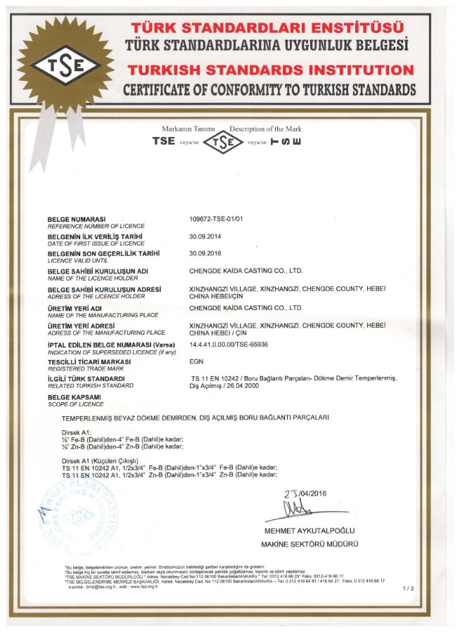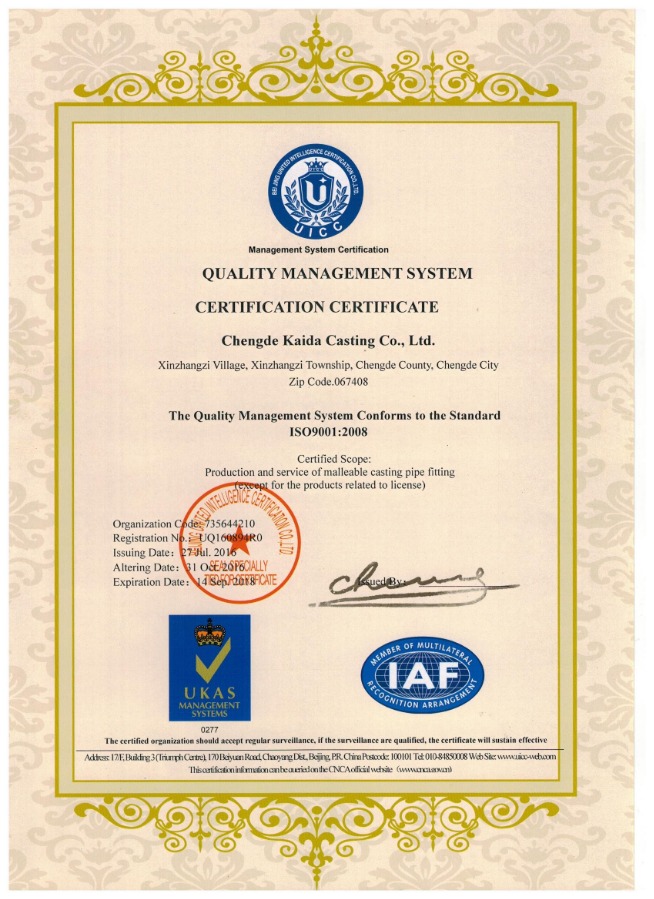 承凱凱達(dá)鑄造有限公司主要生產(chǎn)各種瑪鋼管件連接件(英標(biāo)、德標(biāo)、美標(biāo)、非標(biāo))。產(chǎn)品廣泛就用于水、油、氣管路連接,為國(guó)內(nèi)外建筑、消防、化工工業(yè)、煉油工業(yè)的首選產(chǎn)品,公司生產(chǎn)瑪鋼管件曾成功競(jìng)標(biāo)2008年北京奧運(yùn)會(huì)游泳場(chǎng)館水立方指定產(chǎn)品。同時(shí),公司可根據(jù)客戶需求,承接來樣加工等業(yè)務(wù)。