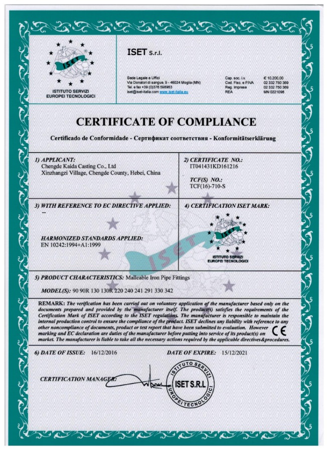 公司技術(shù)力量雄厚,擁有一批經(jīng)驗(yàn)豐富的技術(shù)人員和管理人員,一直致力于產(chǎn)品技術(shù)創(chuàng)新;生產(chǎn)設(shè)備先進(jìn),擁有現(xiàn)代化生產(chǎn)及檢測(cè)設(shè)備,采用手工造型、機(jī)械造型、消失膜造型、失臘精密鑄造等多種造型工藝。公司經(jīng)過ISO質(zhì)量管理體系認(rèn)證和UL、CE、TSE認(rèn)證,嚴(yán)格按現(xiàn)代化企業(yè)管理制度嚴(yán)格管理和ISO質(zhì)量管理體系標(biāo)準(zhǔn)組織生產(chǎn),嚴(yán)把產(chǎn)品質(zhì)量關(guān),從原料進(jìn)廠到成品入庫(kù)建有一套完整的質(zhì)量保障體系,保證了管件材質(zhì)優(yōu)良、角度精確、表面光滑、堅(jiān)固耐用,防銹力強(qiáng)等特點(diǎn),各項(xiàng)技術(shù)指標(biāo)均達(dá)國(guó)際標(biāo)準(zhǔn)。我司產(chǎn)品遠(yuǎn)銷土耳其、墨西哥、荷蘭、比利時(shí)、東南亞等國(guó)家和地區(qū),在國(guó)內(nèi)外市場(chǎng)享有很高的聲譽(yù)。進(jìn)入新時(shí)代,我司正在走智能制造,綠色鑄造,清潔生產(chǎn)之路。培育創(chuàng)業(yè)、創(chuàng)新創(chuàng)優(yōu)企業(yè)精神。公司環(huán)保設(shè)備先進(jìn),安全生產(chǎn)達(dá)到標(biāo)準(zhǔn)化,逐步打造“強(qiáng)、優(yōu)、大”規(guī)模企業(yè)。